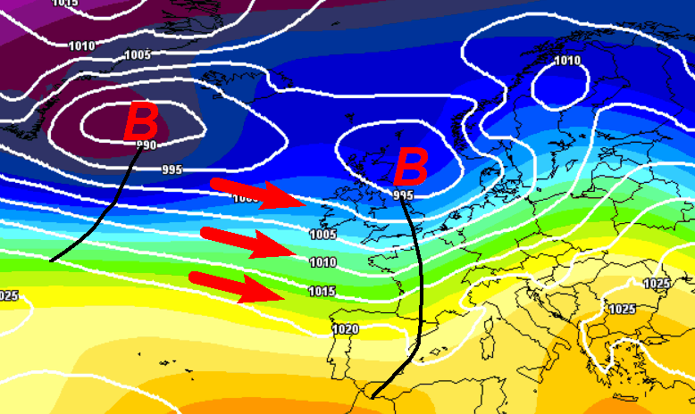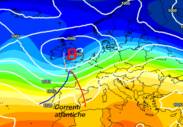 Alta pressione messa in crisi da una serie di perturbazioni di provenienza atlantica ed inserite in un corridoio di correnti occidentali abbastanza tese. In sostanza, un tempo non freddo, ma ventoso e abbastanza dinamico da nord a sud.