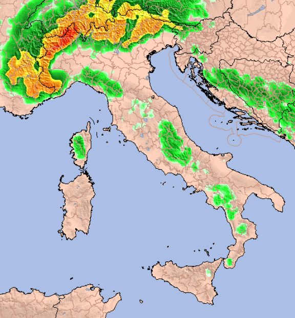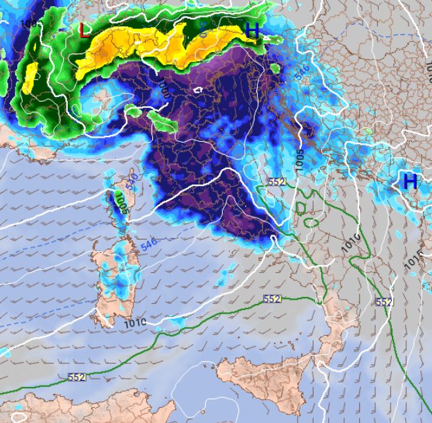 Il fronte di sabato 9 marzo magari non sarà un granché al settentrione ma colpirà in modo abbastanza netto le regioni centrali tirreniche, anche se al nord sono attese nevicate sulle Alpi oltre gli 800-1000m, qui una mappa centrata per la mattinata: