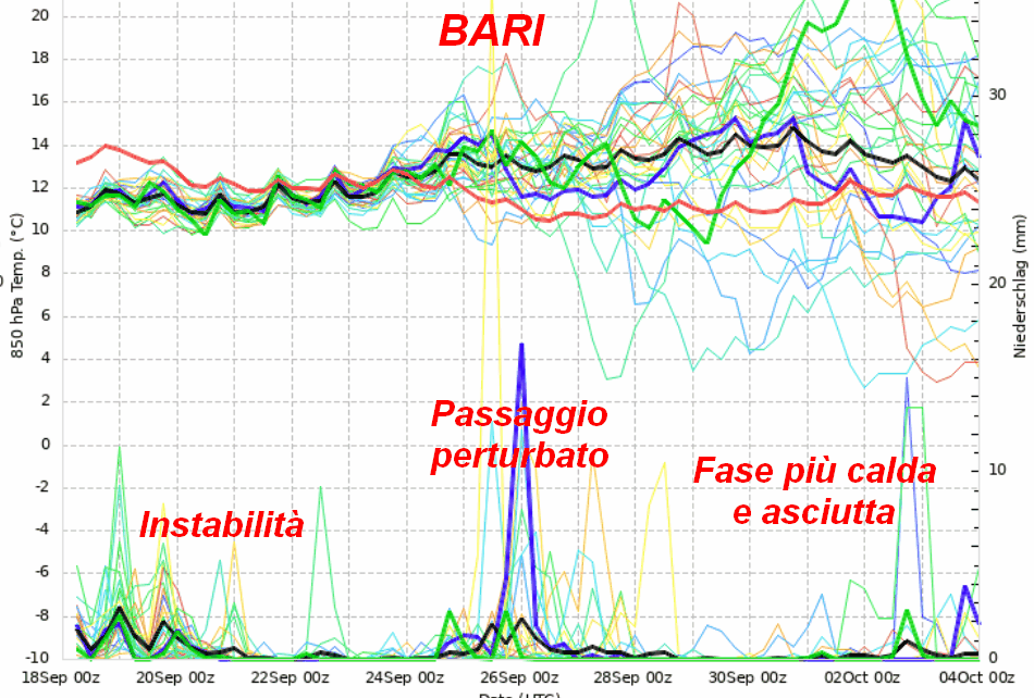 Infine, il terzo diagramma mostra la linea di tendenza del tempo nei prossimi 15 giorni sulla verticale della città di BARI: