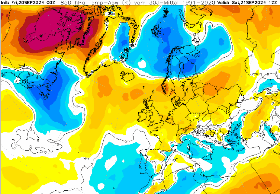 Osserviamo adesso le anomalie termiche sempre a 1500 metri, previste per l’inizio della settimana prossima, in modo particolare per le ore centrali di martedi 24 settembre: