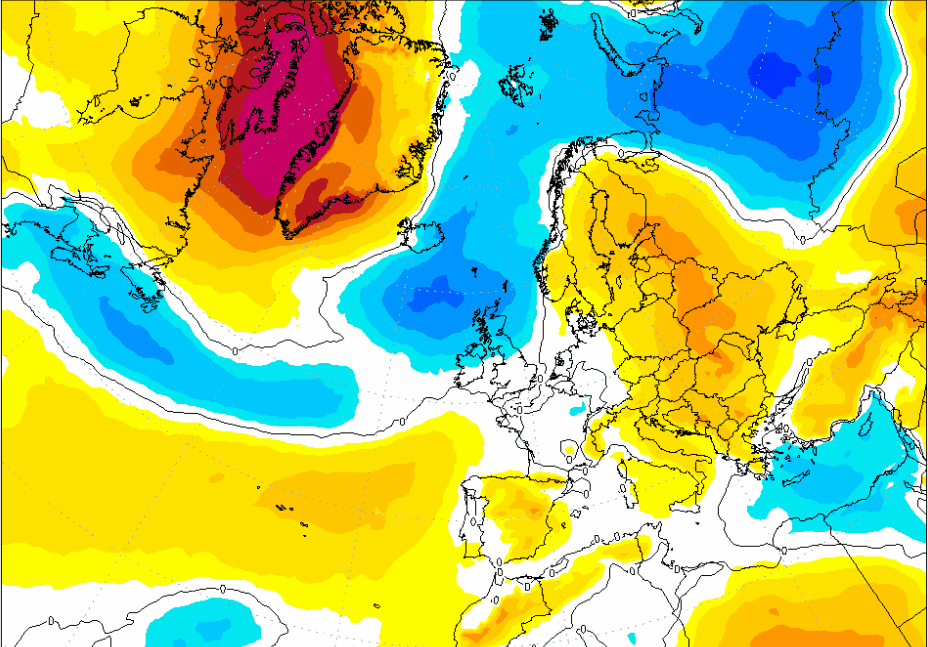 Si nota un lieve sotto media termico in sede italica di circa mezzo grado sui valori normali, che si contrappone al surplus termico anche notevole che si avrà sul resto d’Europa, in modo particolare in sede scandinava.