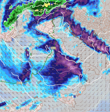 Ecco i fenomeni previsti sino alle 18 di oggi secondo il modello europeo, saranno concentrati su alte e medie pianure del nord, sulle Alpi, sulla Liguria e sull’alto e medio Tirreno, a seguire quelli attesi tra questa notte e l’alba di venerdì, concentrati sul nord-est, gran parte della fascia tirrenica e la Sardegna, da notare le prime nevicate ad alta quota su ovest Alpi: