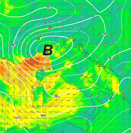 A livello sinottico ecco l’evoluzione al suolo prevista tra venerdì e sabato mattina riassunta in queste due mappe: nella prima il vortice depressionario si colloca nel cuore della Valpadana, nella seconda "fugge" verso l’alto Adriatico, favorendo una violenta maestralata a ridosso della Sardegna.