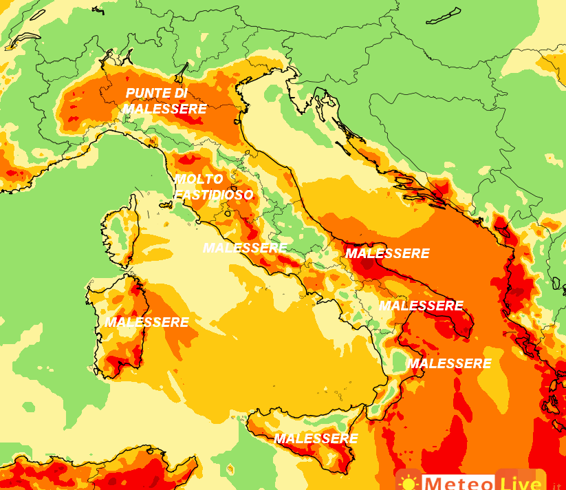 Avremo ancora condizioni di malessere fisico o caldo molto fastidioso su gran parte della nostra Penisola. Si salveranno ovviamente le aree montuose.