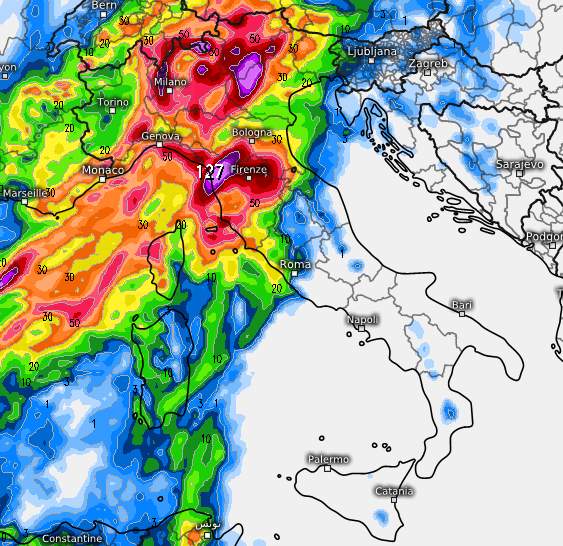 In pratica sempre un pesante coinvolgimento della Toscana ma molto meno di Umbria e Lazio (almeno in un primo tempo), molto di più della Lombardia ma fenomeni meno violenti sulle Venezie, mentre salirebbero gli accumuli sul Trentino Alto Adige. Insomma, come vedete una situazione molto delicata, in cui ogni modello dice la sua e non è facile per gli addetti ai lavori trovare una linea univoca rispetto a questa differenza di vedute sulla traiettoria del fronte.