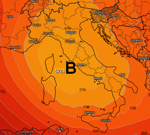 Ecco la carta barica che più di tutte evidenzia la presenza di un vortice freddo in quota che abbraccia lo Stivale: sono le prime ore di lunedì 19 agosto: