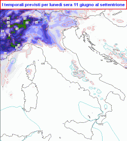 EVOLUZIONE: nel corso di lunedì la figura depressionaria presente sulla Francia sfonderà sul nostro settentrione, favorendo i primi temporali a ridosso della fascia montana entro sera, in sfondamento martedì anche sulla Toscana.