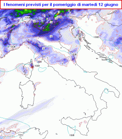 DOMANI: ancora bel tempo ovunque sino al pomeriggio ma più afoso e con presenza di qualche banco nuvoloso al nord; sarà la giornata più calda della prossima settimana. Verso sera sviluppo di rovesci o temporali sparsi sulla fascia alpina, prealpina e pedemontana del nord con annesso calo termico.