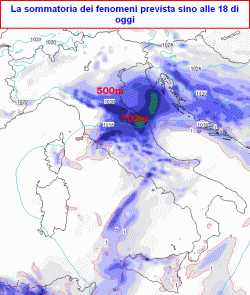 OGGI: al nord-ovest dapprima nebbia in pianura, schiarite nelle Alpi, poi venti da est e sollevamento delle nebbie con formazione di nubi e qualche modesta nevicata serale e notturna lungo la fascia prealpina, ancora schiarite in Liguria. Al nord-est nuvolosità irregolare, a tratti intensa, con precipitazioni sparse, più insistenti e continue tra Emilia orientale, Romagna e basso Veneto con limite della neve in calo a 500m e Bora in inserimento. Al centro molto instabile con piogge e rovesci, dapprima in Toscana, poi anche sulle rimanenti zone a partire da Marche ed Umbria. Nuvolosità variabile con locali rovesci in Sardegna. Abbassamento del limite delle nevicate sull’Appennino marchigiano e toscano sino a 600m entro sera. Al sud nuvolosità irregolare con piogge sparse e locali rovesci, possibili soprattutto sul basso Tirreno e la Sicilia. Temperature in calo al nord, poi anche al centro.