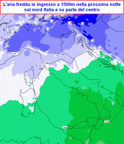 FREDDO MODERATO: sino a venerdì la depressione verrà alimentata da una circolazione di aria moderatamente fredda, peraltro in linea con situazioni tipiche che possono riscontrarsi in questo periodo.