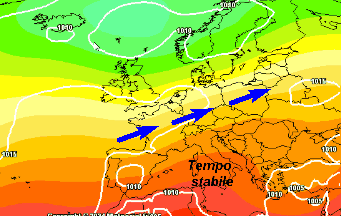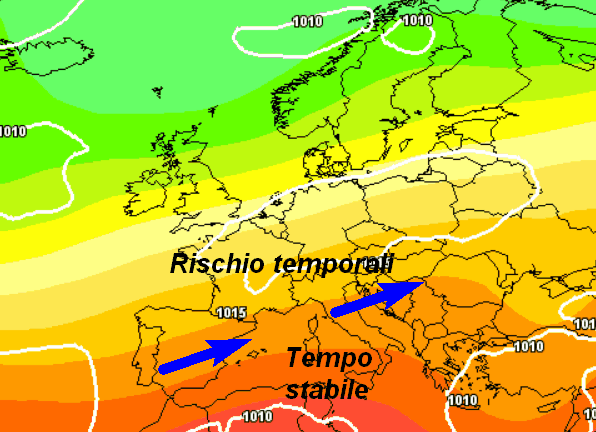 Alta pressione e tempo stabile sull’Italia. Le correnti atlantiche fresche ed instabili saranno costrette a scorrere a nord delle Alpi, lambendo solamente la chiostra montuosa con un po’ di variabilità. Sul resto d’Italia sarà il sole a comandare la scena meteorologica nazionale, con temperature in aumento specie al centro e al sud.