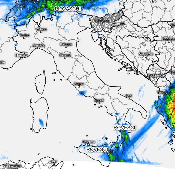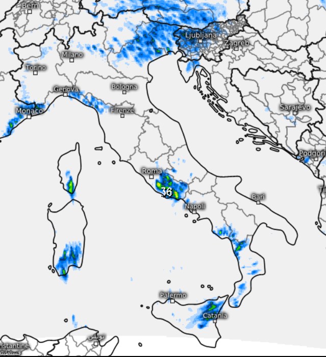 In mattinata tempo abbastanza buono su quasi tutta l’Italia, possibile qualche pioggia solo sull’Abruzzo e isolatamente in pianura fra Piemonte e Lombardia fino alle 10:00.
