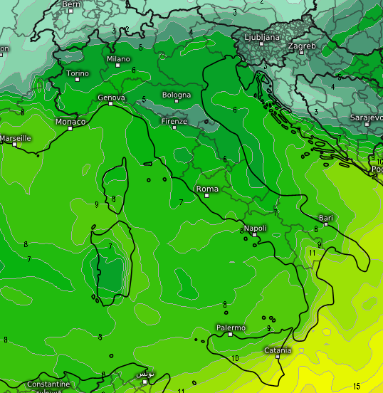 Sul fronte delle temperature invece parlavamo di un’incidenza importante su tutta la Penisola. Infatti il caldo presente tra giovedì e venerdì al centro ma soprattutto al sud, sarà spazzato via dalla corrente di origine artica e le temperature si porteranno addirittura al di sotto delle medie, in particolare nelle Alpi.