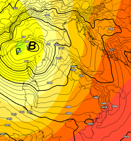 E’ tutto vero! Il ciclone sul Golfo ligure si scaverà nella notte su lunedì arrivando dal Mare di Corsica e coinvolgendo il con venti forti l’alto e medio Tirreno (sino a 80km/h e mareggiate lungo le rispettive coste), con temporali marittimi in sfondamento dalla costa all’entroterra toscana e ligure, sino a propagarsi, pur leggermente attenuati, sul catino padano.