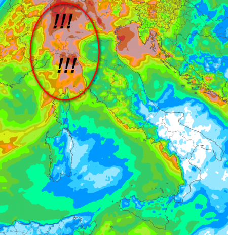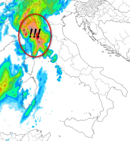I fenomeni più intensi andranno poi a localizzarsi tra Piemonte orientale e Lombardia centro-occidentale e il minimo, guadagnando spazio verso nord-est, provocherà nuovi temporali intensi, pur intermittenti, tra Lombardia, Piemonte, Veneto, Friuli, Emilia, Trentino Alto Adige, zone interne del centro, segnatamente del versante tirrenico.