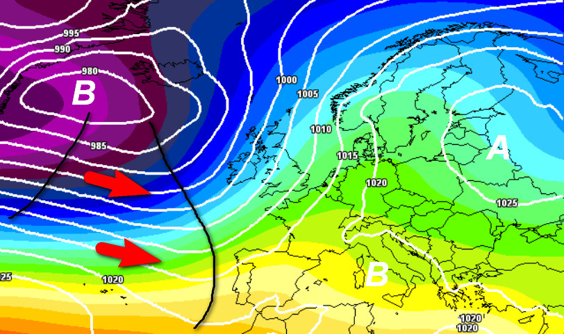 Correnti atlantiche alla riscossa su tutto il settore centro-occidentale europeo, compresa l’Italia, dove avremo un tempo piovoso, ma non freddo. L’alta pressione resterà a presidio di tutto il settore orientale del Continente, dove vigerà un clima più secco, ma anche freddo.