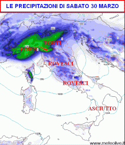 Ecco le precipitazioni attese per la giornata di oggi, sabato 30 marzo.