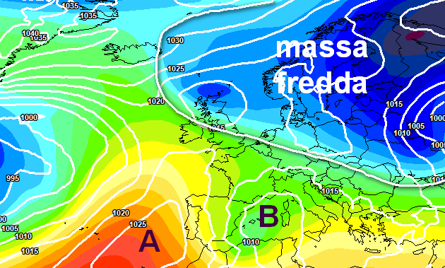 Quella massa fredda lì che vediamo scendere da nord però ci colpirà? Vediamola più da vicino in sede europea:
