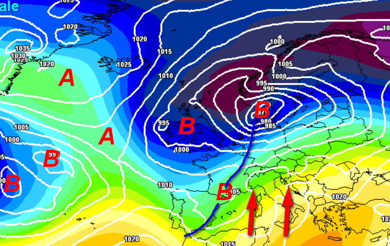 Ecco la perturbazione che possiamo definire “vecchio stile”, che si allungherà sul Mediterraneo occidentale e formerà una depressione sul Golfo del Leone. Si tratta di una situazione perfetta per avere piogge sulle pianure del settentrione e neve sulle Alpi specie nel pomeriggio-sera e su quele Lombarde, finalmente non solo sui versanti esteri, ma anche su quelli Italiani, comprese le Prealpi.