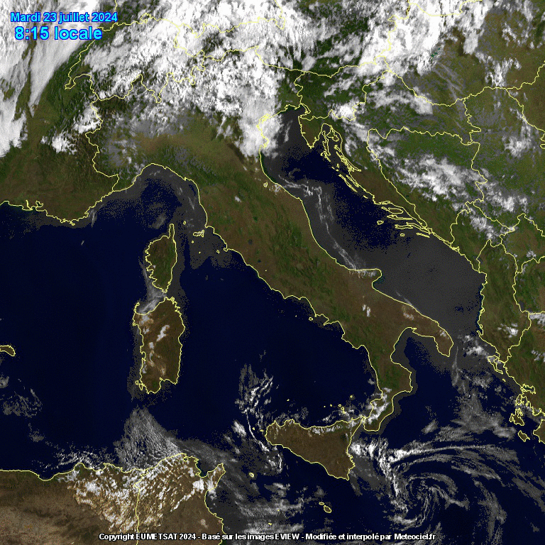 Iniziamo con l’immagine satellitare in moviola delle ore 10:00 che ritrae il tempo delle ultime ore in Italia: