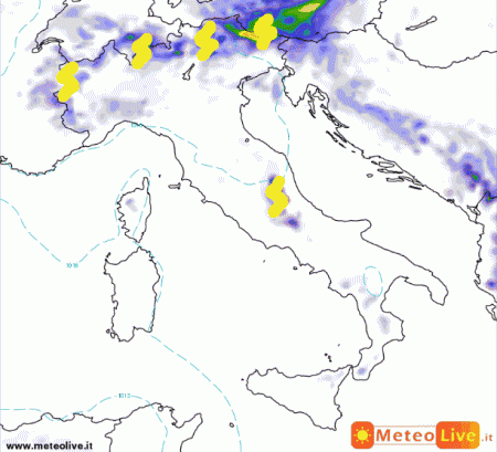 I nuclei temporaleschi presenti questa mattina sulla Liguria e l’alto Adriatico si attenueranno prima di mezzogiorno. Nel pomeriggio-sera colpi di tuono si udiranno sulle Alpi e le Prealpi, con locali sconfinamenti verso le aree di pianura prossime ai rilievi.