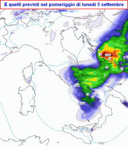 VORTICE DEPRESSIONARIO: dietro al fronte freddo si inserirà una circolazione depressionaria in arrivo dai Balcani e diretta al centro e al sud, dove si rinnoveranno condizioni di instabilità almeno sino a giovedì 8 settembre; solo il nord ne rimarrà ai margini. Ci saranno vento, temporali, ma anche brevi schiarite in un contesto fresco e con mari mossi o molto mossi.