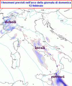 Sino a martedì al nord e marginalmente in Adriatico un po' di freddo umido, qualche precipitazione al nord, nelle zone interne del centro e sulla Calabria jonica, per il resto asciutto. Da mercoledì alta pressione, tempo migliore e nettamente più mite, specie in montagna.