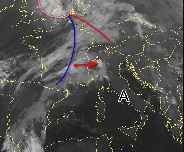 La situazione a scala europea vede una fascia di relativa alta pressione sul Mediterraneo a cui fa da contro altare il flusso atlantico che scorre a latitudini più elevate. C’è una debole perturbazione che oggi lambirà il settentrione con qualche pioggia, ma vediamo tutto tramite l’immagine satellitare di questa mattina: