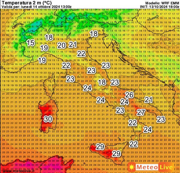 Dal punto di vista termico, queste sono le temperature attese in Italia alle ore 15 di oggi pomeriggio: