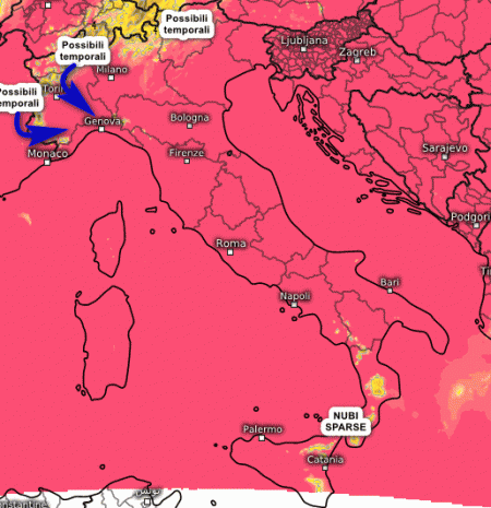 Ecco i temporali che si formeranno tra pomeriggio e sera su Alpi e Prealpi, con sconfinamenti verso la pianura piemontese in serata. Qualche temporale pomeridiano non si esclude anche tra l’Appennino Ligure orientale e Tosco-Emiliano. Sul resto d’Italia tempo stabile e soleggiato, con qualche nube all’estremo sud senza conseguenze.