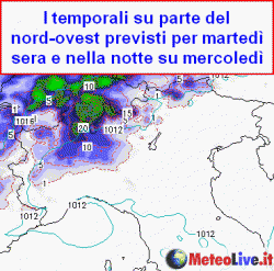 EVOLUZIONE: già nella notte tra martedì e mercoledì il nord-ovest verrà coinvolto da alcuni temporali a ridosso dei rilievi, che mercoledì si estenderanno alle zone di montagna e pedemontane del Triveneto. Nel contempo la massa d’aria calda comincerà a localizzarsi sul meridione, prima di lasciare l’Italia entro le prime ore di giovedì.