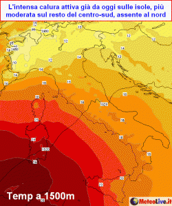 Sulla Sardegna si sfioreranno i 40°, specie nelle zone più lontane dal mare, mentre sulla Sicilia, la Puglia e la Calabria i termometri toccheranno
