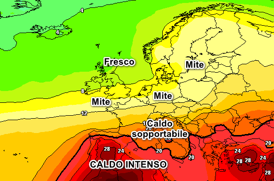 Analizzando le mappe delle temperature a 1500 metri previste per giovedì 24 luglio, emerge chiaramente una distinzione.