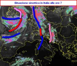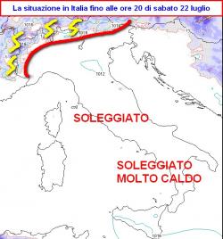 Il fronte viaggia ora attenuato verso l’Europa orientale, ma da ovest si preparano nuovi attacchi al dominio anticiclonico che si faranno sentire a partire dalla giornata di lunedì 24 luglio.