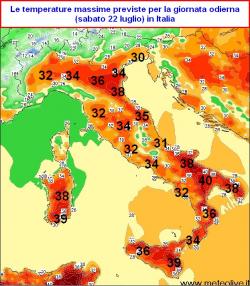 Questo è il quadro delle temperature massime previste per la giornata odierna (sabato 22) in Italia.