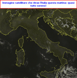 Ecco l’Italia sgombra da nuvolosità significativa; l’immagine satellitare di questa mattina si commenta da sola e ci mostra la nostra Penisola abbracciata dalla stabilità.