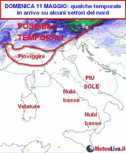 Ecco invece la situazione attesa nella giornata di domenica 11 in Italia.