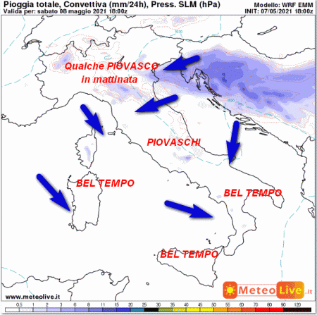 La giornata di domenica 9 maggio si presenterà invece stabile su quasi tutta l’Italia: