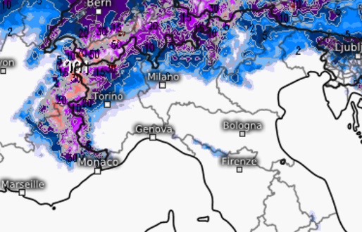 Abbondanti invece i fenomeni attesi nelle località sciistiche valdostane, da Courmayeur a Cervinia, più moderati altrove: da Macugnaga a Madesimo, da Bormio a Livigno sino a Madonna di Campiglio non si dovrebbe andare oltre i 10-15cm, anche meno sul settore dolomitico.