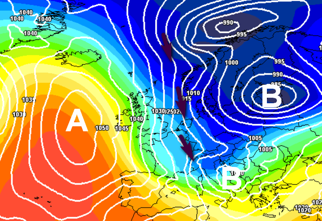 Chiaro che le correnti da nord-ovest insistono se qualcuno le costringe a mantenere questa traiettoria e quel qualcuno è sempre l’anticiclone, in posizione invadente, ma non eccessivamente protettiva da chiudere tutti i varchi alla penetrazione dei fronti.