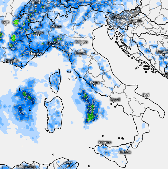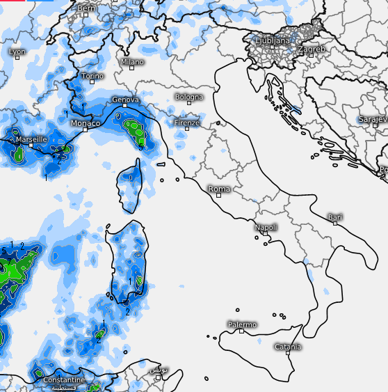 Le conseguenze non saranno eclatanti ma qualche temporale potrebbe scoppiare a ridosso della Sardegna e del Mar Ligure, un po’ di nuvolaglia potrebbe coinvolgere il nord-ovest e le regioni centrali tirreniche, come vediamo qui sotto: