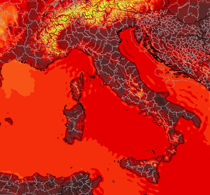 In ogni caso un lieve allentamento della calura sarà assicurato proprio dall’inserimento del cavo d’onda che vedete all’altezza della Sardegna: