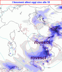 OGGI: al nord ampie schiarite, pur mascherate da banchi di nebbia locali nelle zone di campagna, solo su Triveneto e segnatamente su Venezia Giulia e Romagna nubi residue con piovaschi ma in esaurimento. Al centro nuvolosità variabile con ampie schiarite e ancora qualche isolato rovescio su Marche, Sardegna, acquazzoni più probabili su Abruzzo meridionale e basso Lazio. Al sud tempo instabile con annuvolamenti irregolari e possibili rovesci o brevi temporali, specie su Campania, Molise, nord Puglia, ma nel pomeriggio anche sui rimanenti settori con isolate grandinate. Temperature in aumento tra nord e centro, in calo moderato al sud sotto precipitazioni.