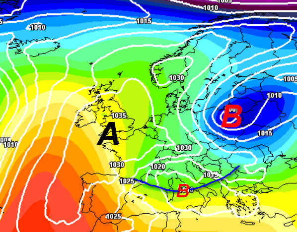 Ecco la perturbazione e la depressione sopra citata che sarà causa di maltempo su alcune aree del centro, ma soprattutto al meridione durante questo fine settimana. La depressione medesima aspirerà inoltre aria fredda dall’est europeo che darà luogo ad una FASE FREDDA in Italia, con rischio di gelate su alcune regioni.