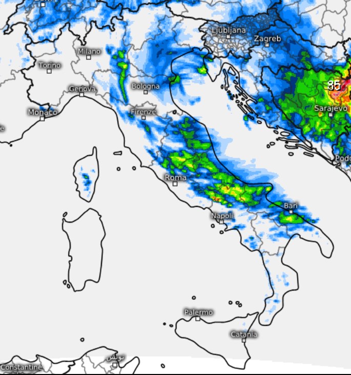Nel pomeriggio, la traiettoria di questo vortice d’aria fredda lo condurrà progressivamente verso sud-est. L’instabilità si estenderà quindi a interessare in modo più marcato l’intero versante adriatico, coinvolgendo anche le aree interne e Appenniniche delle regioni centrali e meridionali. Qui si prefigura la possibilità di assistere allo sviluppo di temporali, che in alcune zone potrebbero rivelarsi anche di forte intensità e accompagnati da grandine.