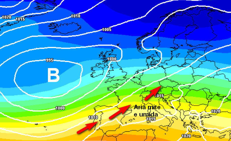Notiamo la completa sostituzione dell’aria fredda con correnti umide ed a tratti piovose specie al nord e sul medio-alto Tirreno, con quota neve in rapida ascesa sulle Alpi, probabilmente oltre i 1.500-1.800m se queste mappe verranno confermate. Lungo il versante adriatico, al meridione e sulle Isole vigerà invece un clima più stabile, asciutto e molto mite, quasi primaverile, stante la risalita di correnti calde dal nord Africa.