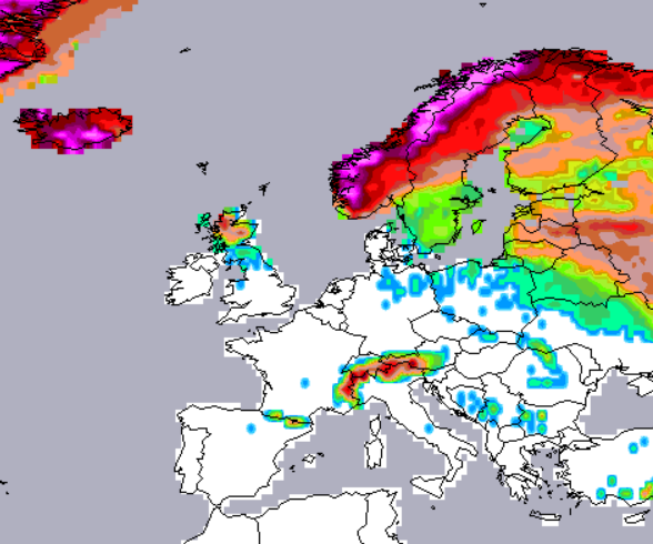Lo testimonia anche la copertura nevosa attesa sull’Europa intorno al 7 gennaio: a parte le Alpi, la regione scandinava e l’est europeo, non c’è traccia di neve in pianura sul resto del Continente: