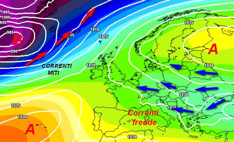 Arriva il freddo nell’arco della prima decade di febbraio? I modelli suonano la carica, ma è bene ancora attendere per avere un quadro tendenziale complessivo maggiormente attendibile. Sta di fatto che il flusso occidentale mite verrà bloccato da una rimonta anticiclonica che partirà dall’anticiclone delle Azzorre e si collegherà tramite un ampio ponte ad un’altra zona anticiclonica presente sul nord-est Europa. L’Italia verrà quindi interessata da correnti orientali progressivamente più fredde, mentre l’aria mite atlantica verrà sbattuta verso nord in direzione dell’Islanda e allontanandosi dall’Italia.