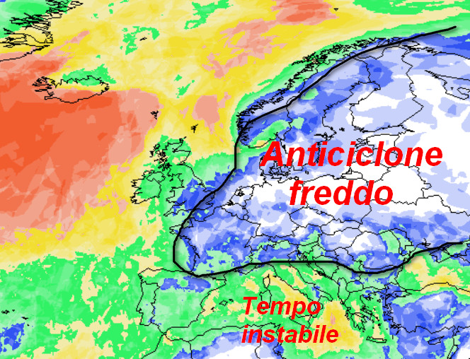 Il ponte anticiclonico si distenderà dal Vicino Atlantico all’Europa nord orientale, sventagliando aria fredda da est in direzione dell’Italia. Oltre ad un calo termico avremo anche fenomeni originati dal contrasto tra la suddetta aria fredda e le acque più tiepide del Mediterraneo; questo potrebbe originare nevicate anche a bassa quota laddove le temperature lo consentiranno.