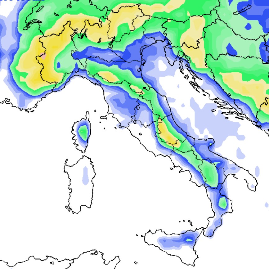 Si notino non solo Alpi, Prealpi e Appennino, ma il rischio di neve, seppur ancora medio-basso, viene contemplato anche in Pianura Padana (specie Piemontese) e sulle aree interne della Toscana.